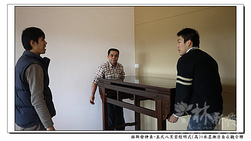 丫倫正在搬神桌下車唷!五尺八的黑紫檀神桌~~重量還真的是有一些咧~~