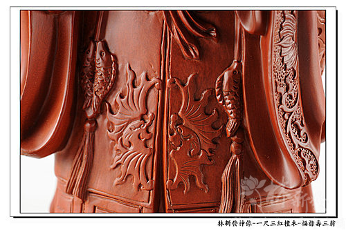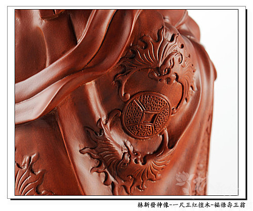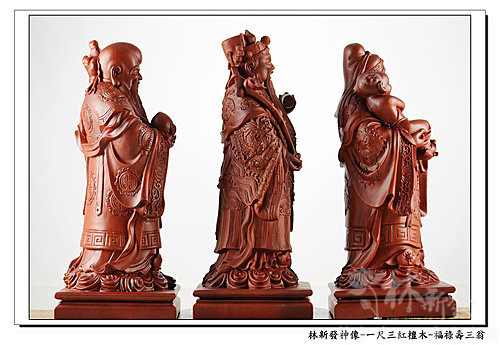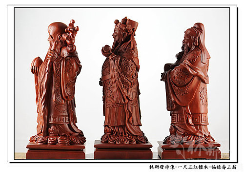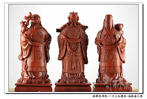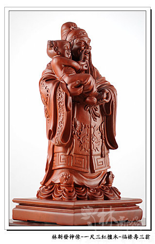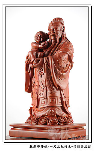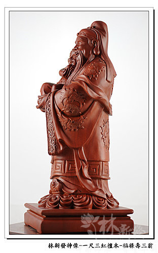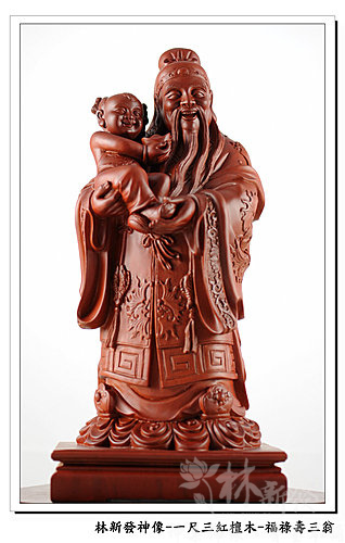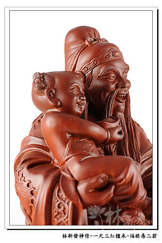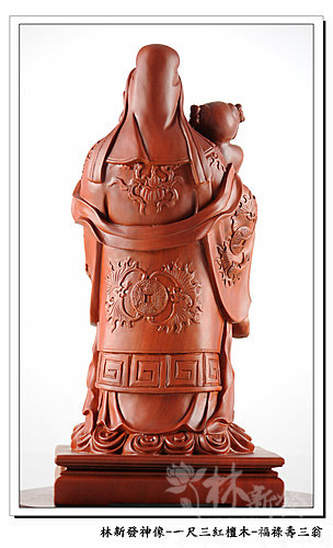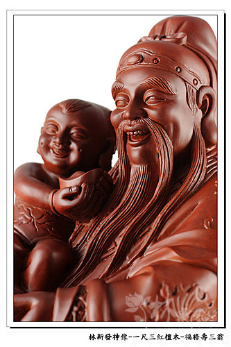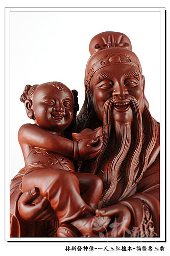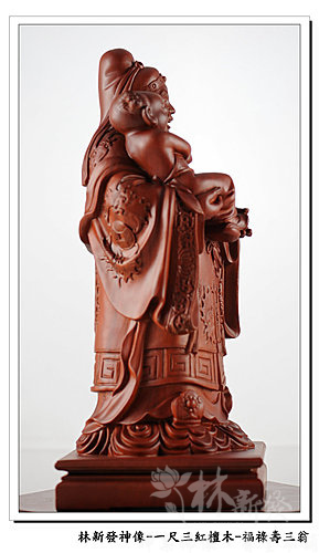 神像-一尺三紅檀木精雕-福祿壽三仙-福神(上 清 福 德 星 君 )