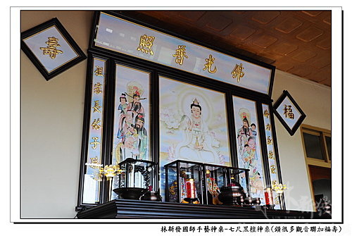 神桌神聯-七尺國師手藝黑檀木-全素面直腳神桌+鑽很多觀音聯(加福壽)