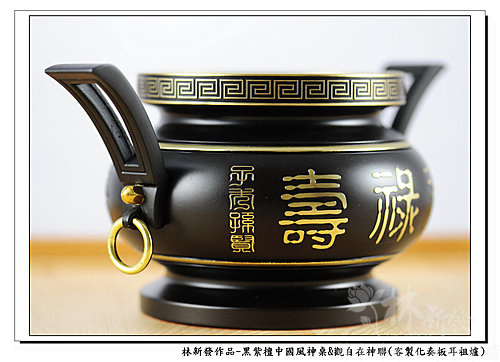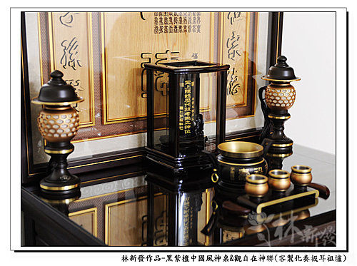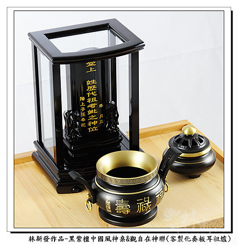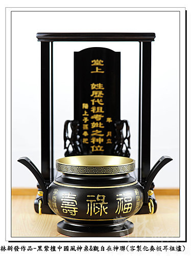 林新發神桌-二尺九黑紫檀木禪風系列&祖德百壽雕刻聯(客製化祖爐分享)