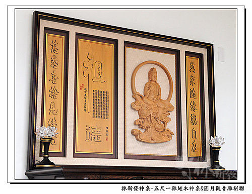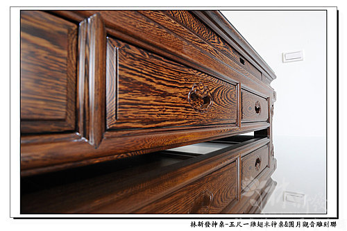 林新發神桌-五尺一雞翅木明式神桌&圓月觀音雕刻聯