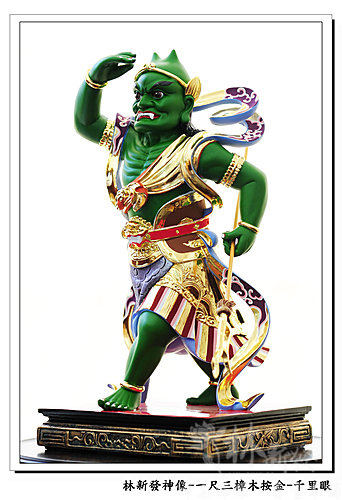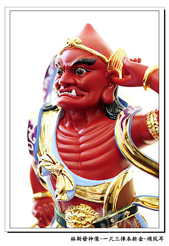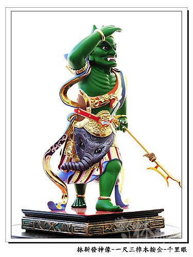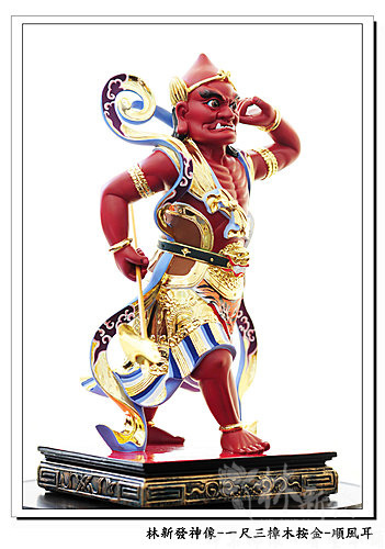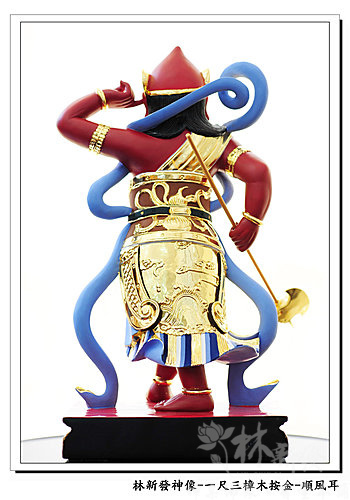 神像-一尺三樟木錦花按金-千里眼順風耳