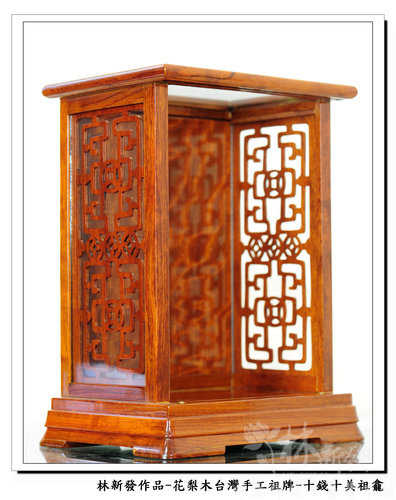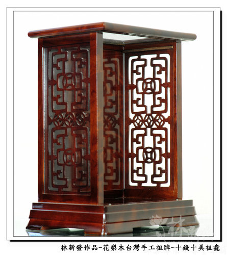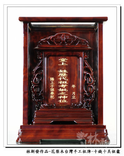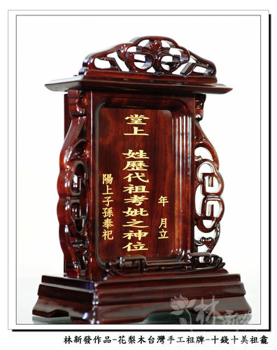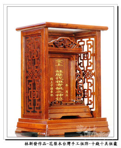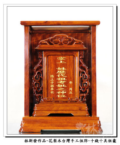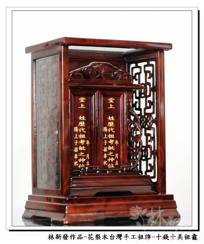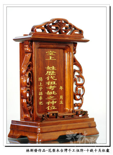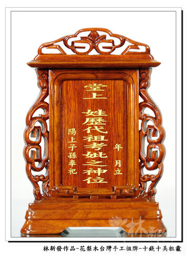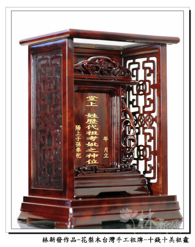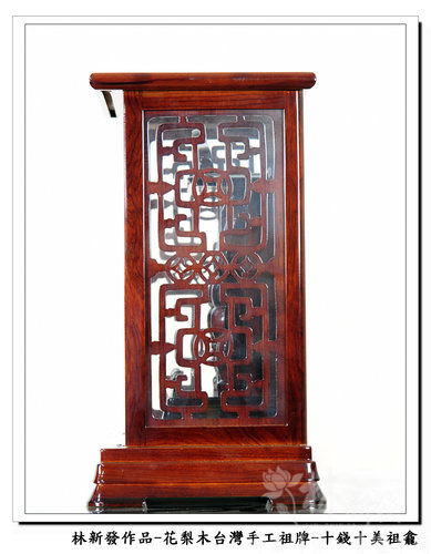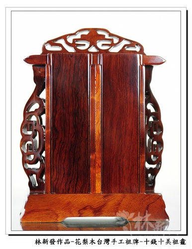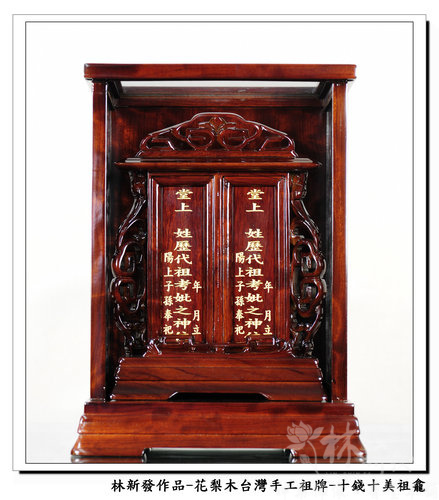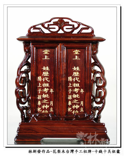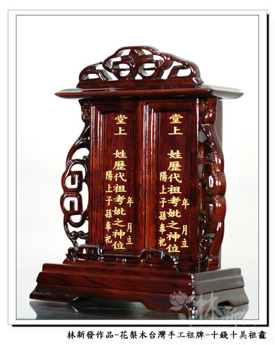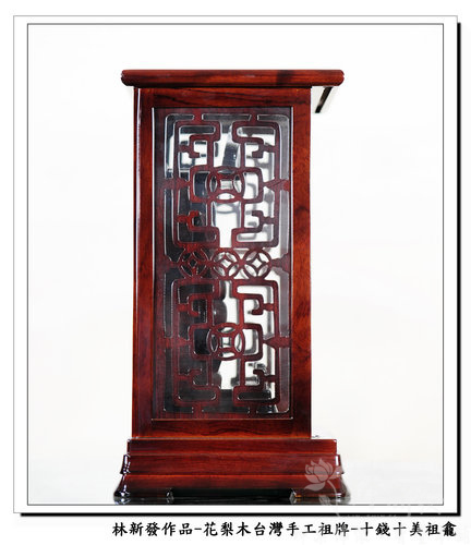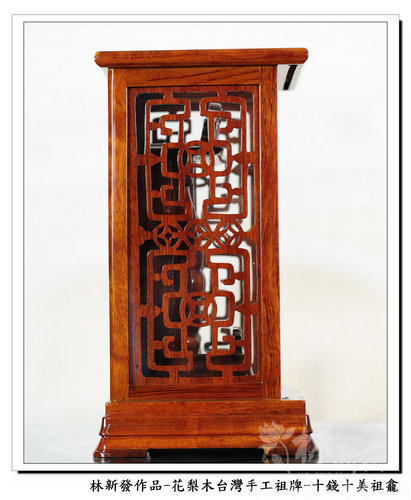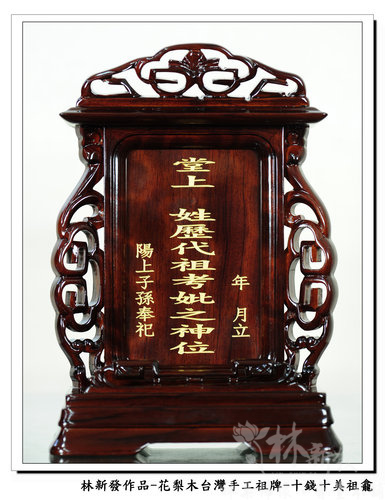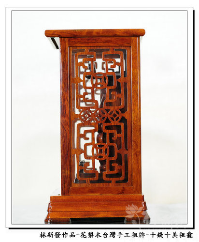 林新發作品-花梨木台灣手工祖龕-十全(錢)十美祖先牌