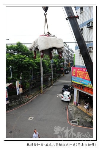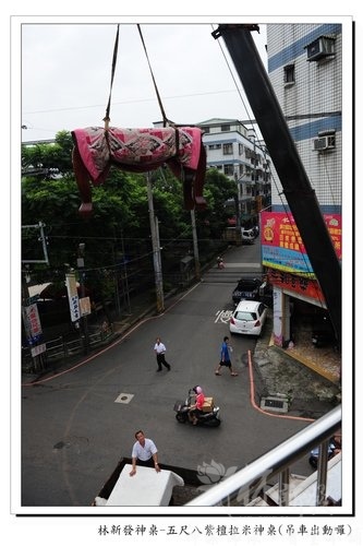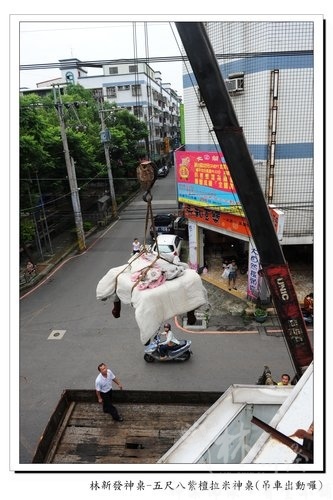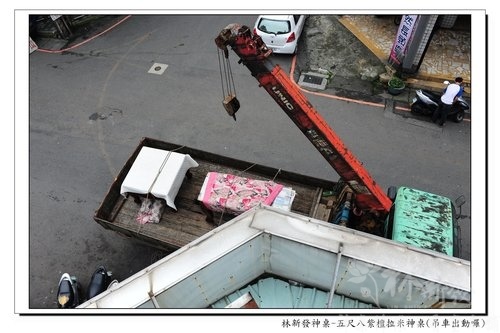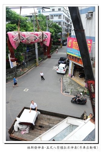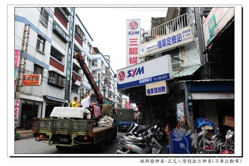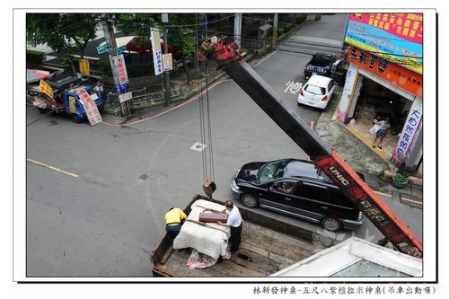 既然如此就請吊車來幫幫忙囉~順手做了記錄給大家看看^^目標是機車行的樓上~