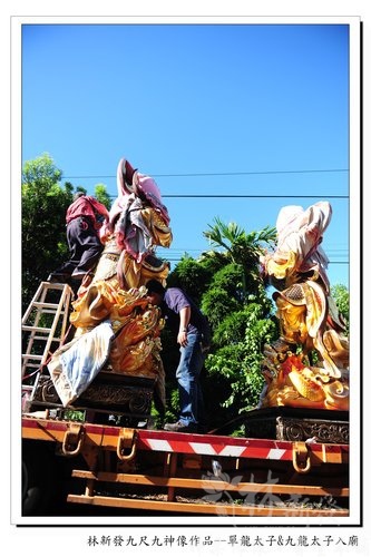 分享九尺九太子護法完成囉~一整個開心^^~入廟的過程也拍了些照片給大家~藍天白雲,配上特大的龍太子~