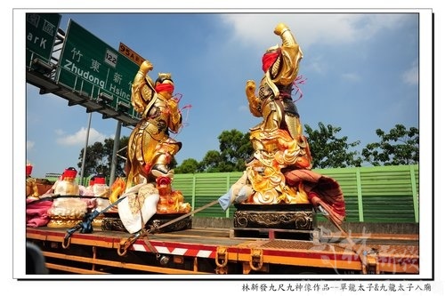 下面這張,是在高速公路拍的照片,有兩尊太子爺在一起玩樂跳舞的感覺咧~開心