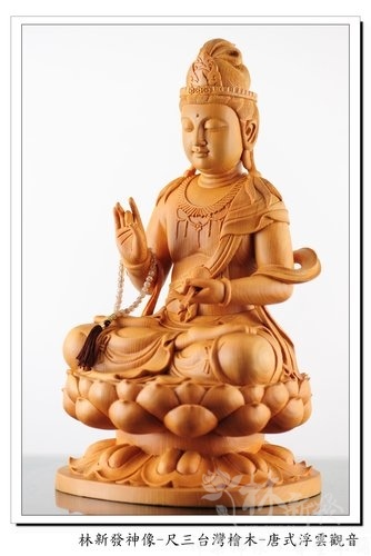 新的台灣檜木作品,唐式風格浮雲觀音~作品中並沒有雲的元素在!只是觀音給人的整體感覺是很輕鬆自在的神韻,