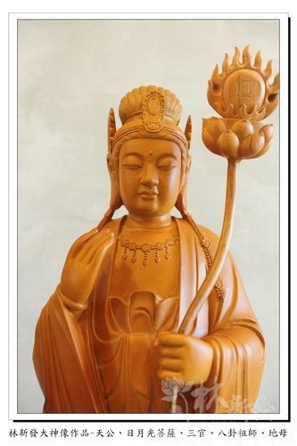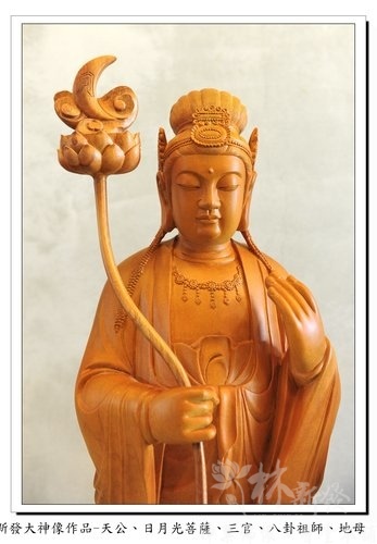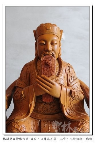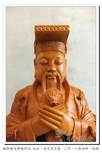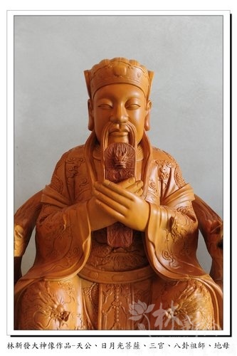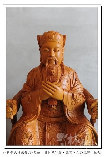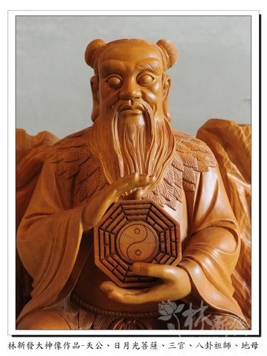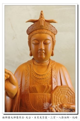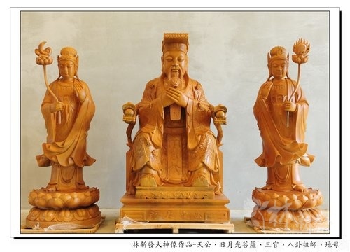 林新發特大神像作品-交址油楠木-天公、日月光菩薩、三官、八卦祖師、地母