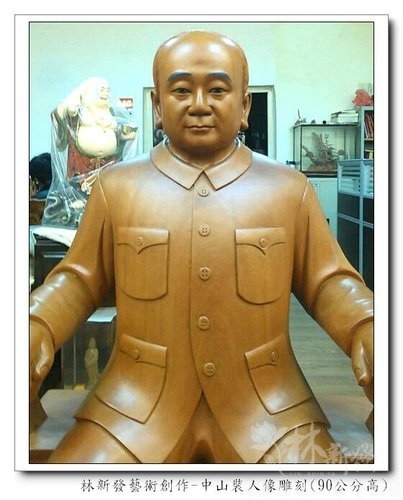 林新發藝術創作-中山裝人像雕刻作品欣賞(90公分高)