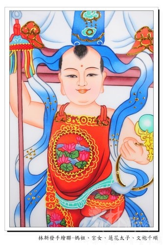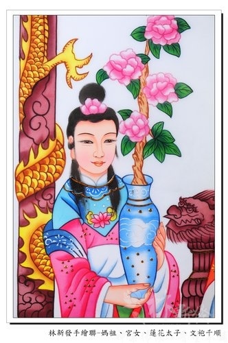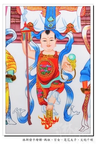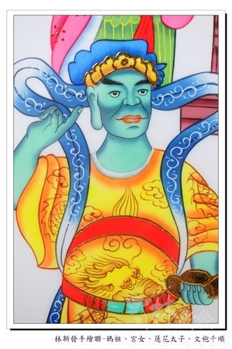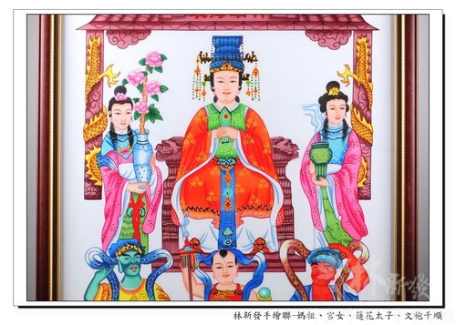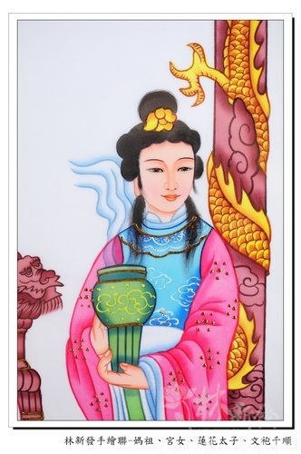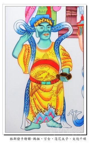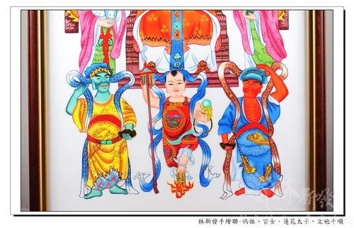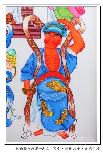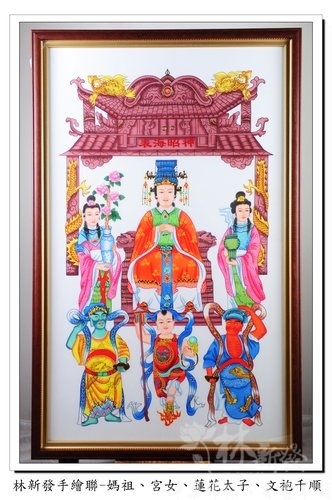 林新發手繪聯-媽祖、宮女、蓮花太子、文袍千順將軍