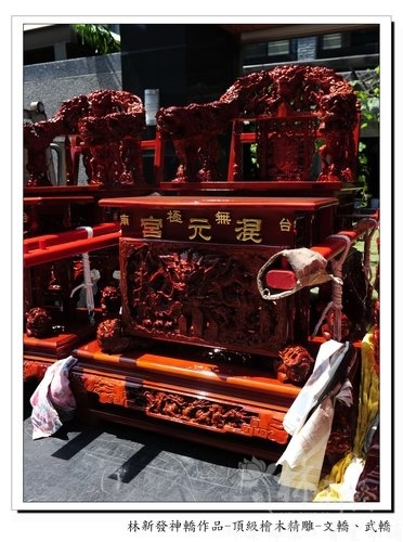 上次分享的檜木白身文轎、武轎完成囉!嘿嘿~~大家都讚不決口阿,直說神明出門超有面子的~~太好了