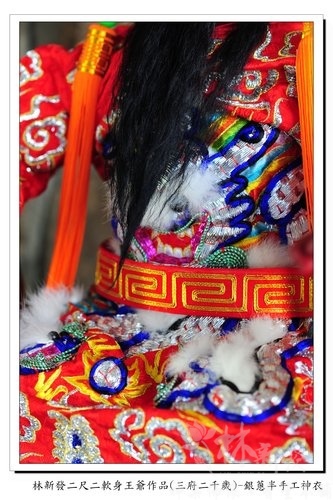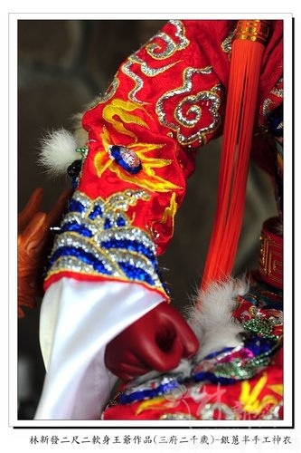 身上的則是半手工製做的紅底銀龍立體神衣