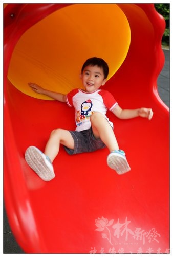 相機的自動快門抓的好準喔!這是溜下來的一剎那咧~補抓到了小傑開心的笑容