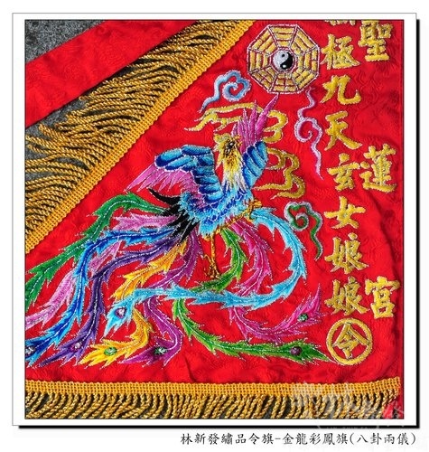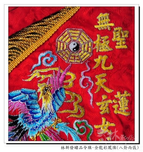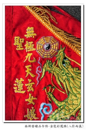 林新發繡品令旗作品-金龍彩鳳旗(八卦兩儀)