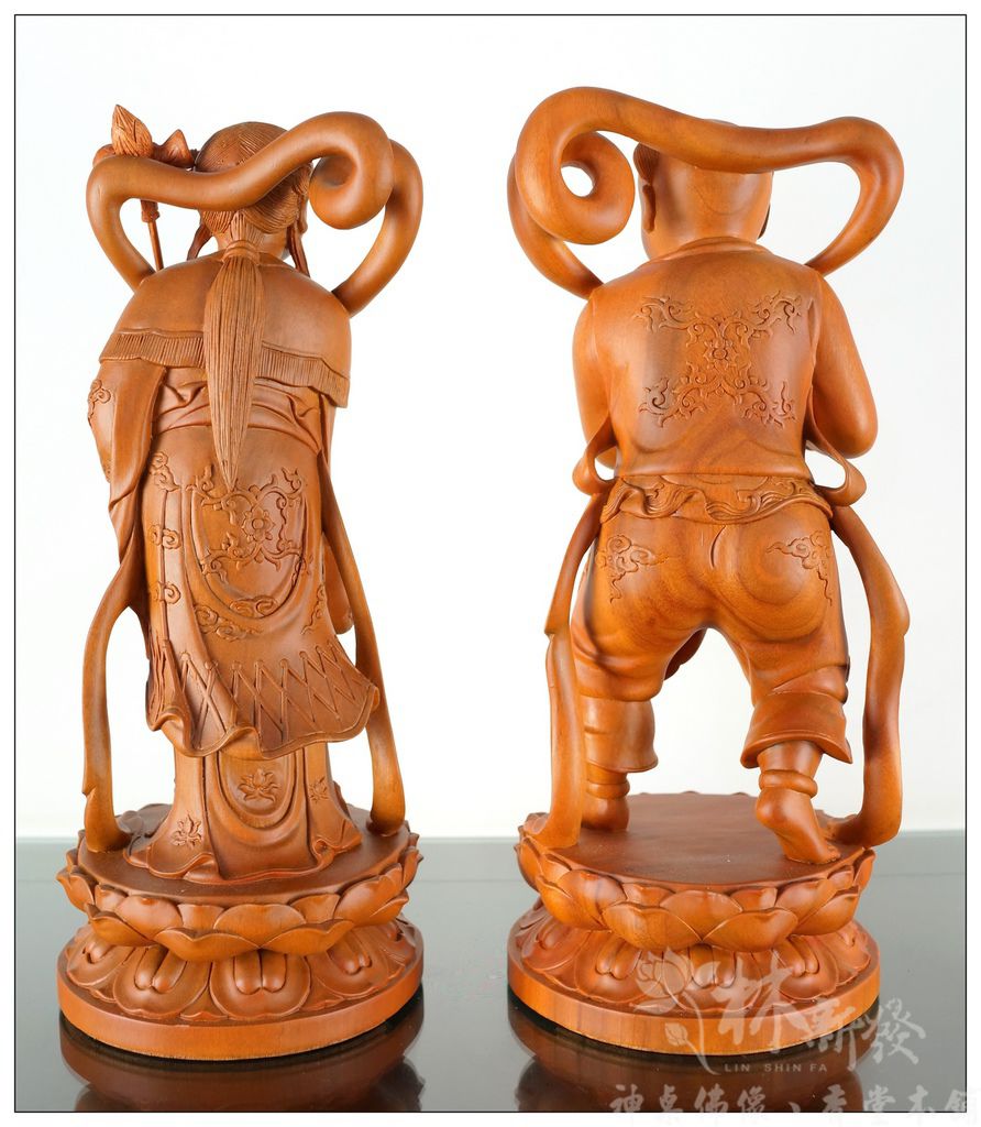 林新發神佛藝術,這一對善財龍女護法材質是樟木細緻錦花雕刻,丫倫也有雕刻了梢楠木跟台灣檜木的作品喔~!!!