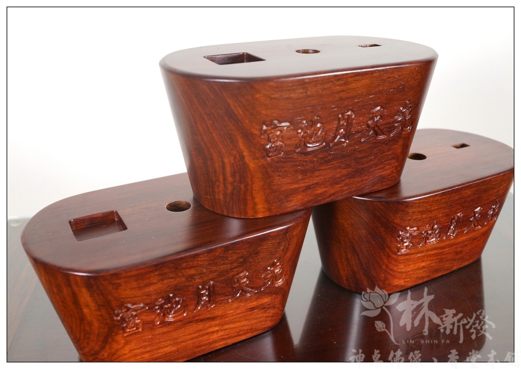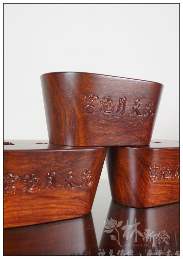 紅花梨木台灣手工作品,天然的色澤與紋理非常的有質感,丫倫是以創作頂級神桌的手藝,來設計細緻的客製化令旗座作品喔!
