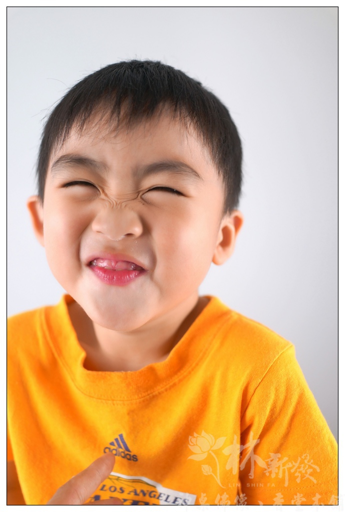 再來看看搞怪的小傑,這是上次我幫他們拍大頭照的檔案,幫小孩拍大頭照真是超有難度的,第一張是完成的採用版