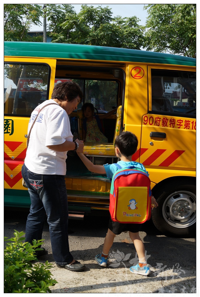 再來是小傑第一次要自己搭娃娃車去上課,爸爸媽媽一起陪他等車