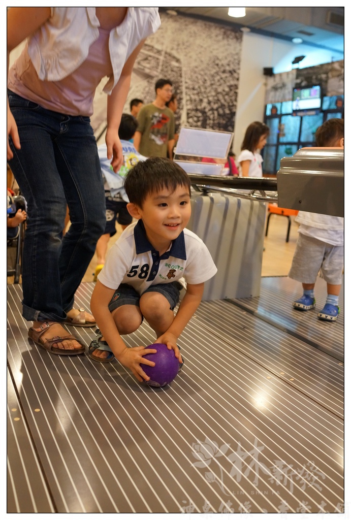 再來帶著小傑去打小保齡球~妹妹只能乖乖在旁邊看XD