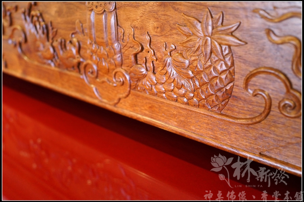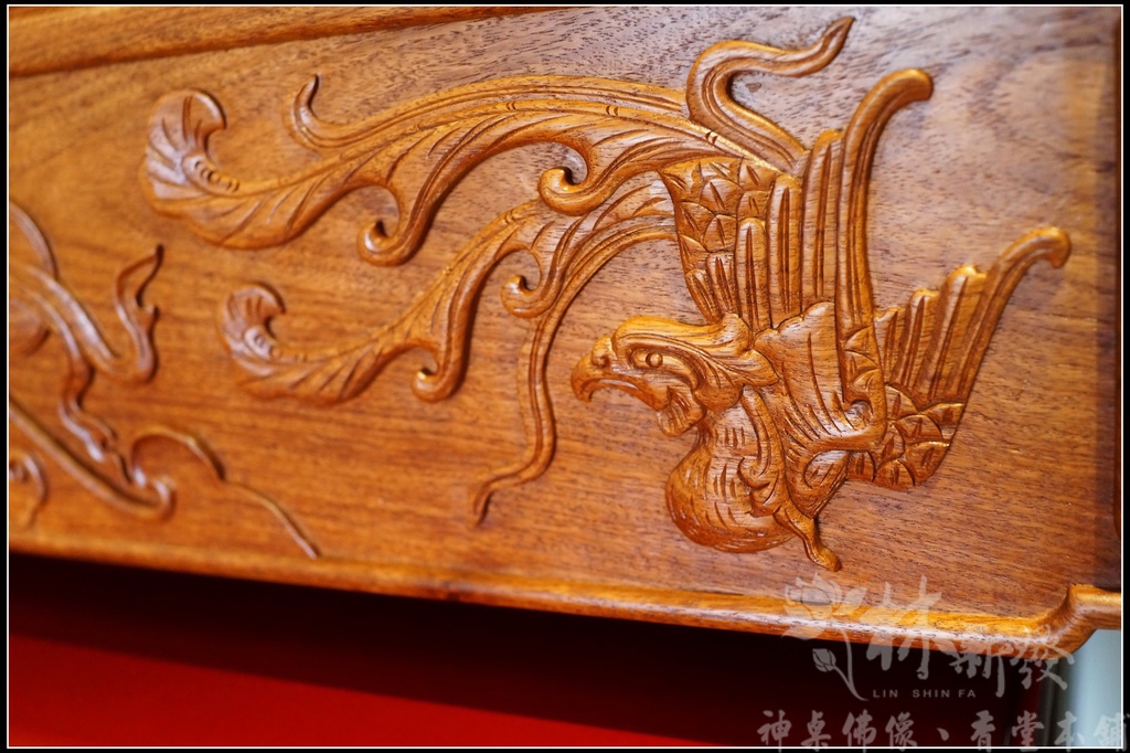 分享七尺的漢式鳳舞敬果神桌,這系列為林新發百分百台灣手工設計製做的作品,除了鳳舞敬果外,也有雕刻九品蓮花的款式