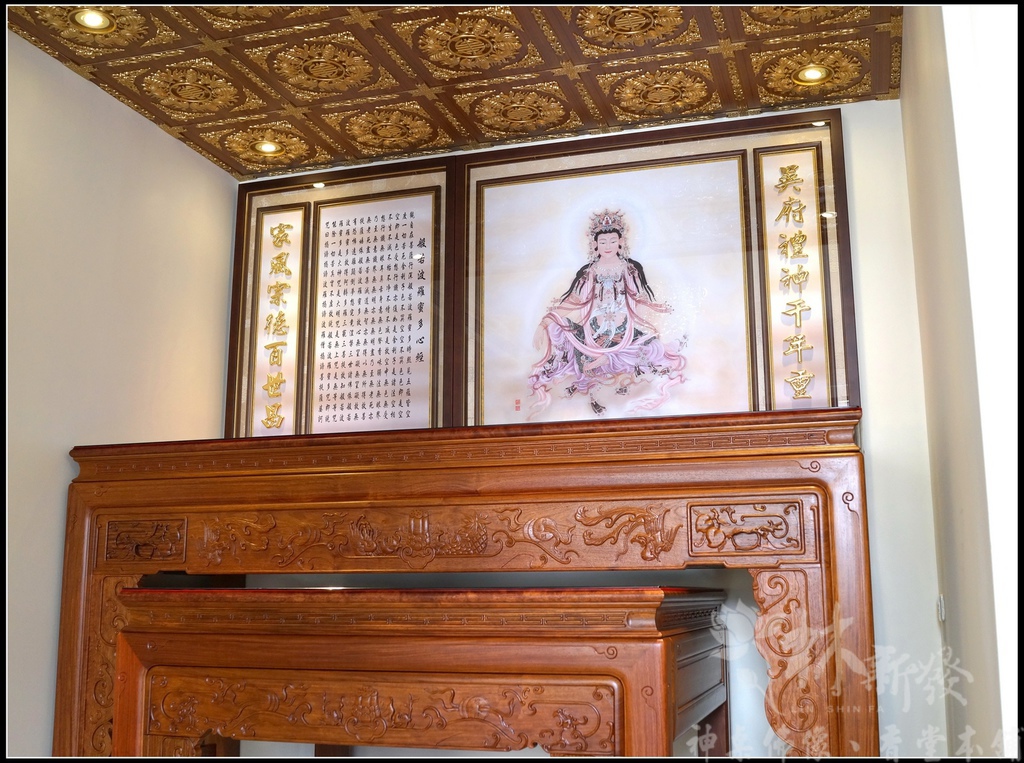 配上台灣手工繪製的唐式觀音心經神聯(對聯是完全客製化雕刻按金的字喔)