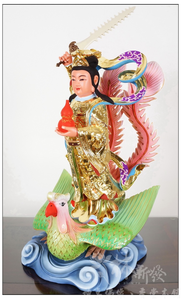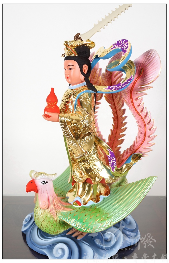 神像佛像-飛鳳九天玄女娘娘(金身彩鳳)-尺六樟木台灣金彩繪作品