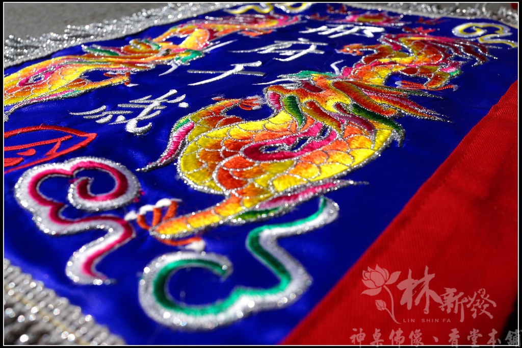 【林新發繡品、令旗、神衣、八仙彩、桌圍、龍圖、佛幡訂製】