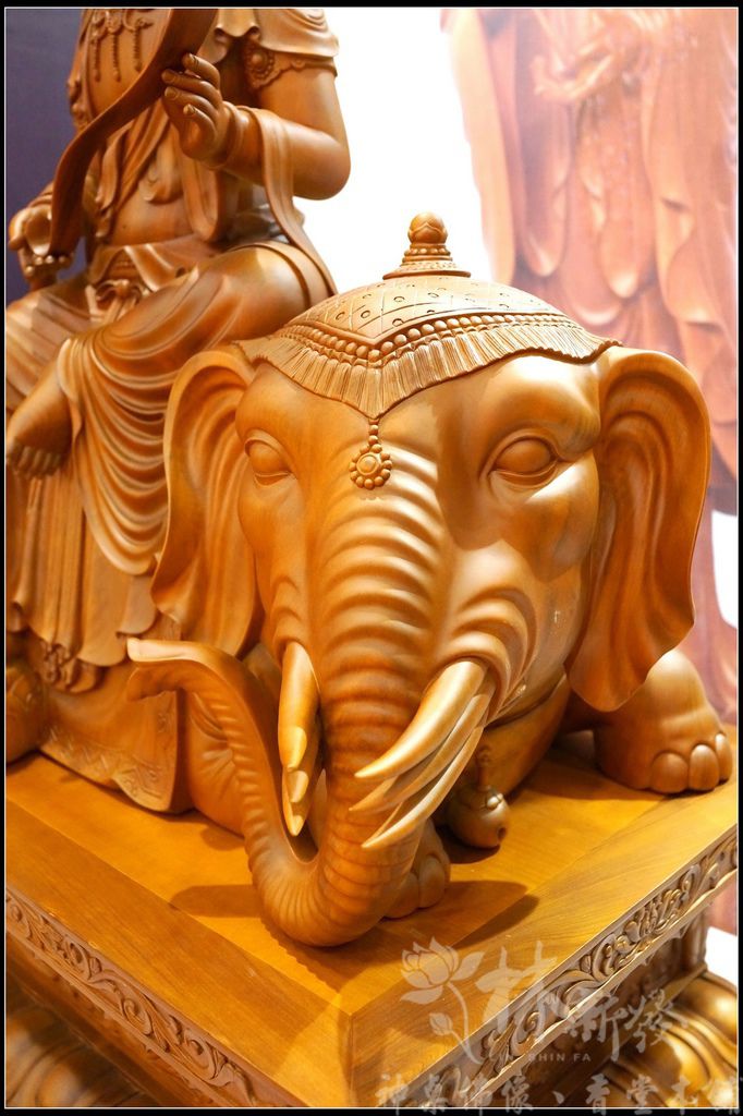 普賢坐騎為六牙白象,展現的是菩薩的大慈力。六牙代表的為:「布施、持戒、忍辱、精進、禪定、慧智」