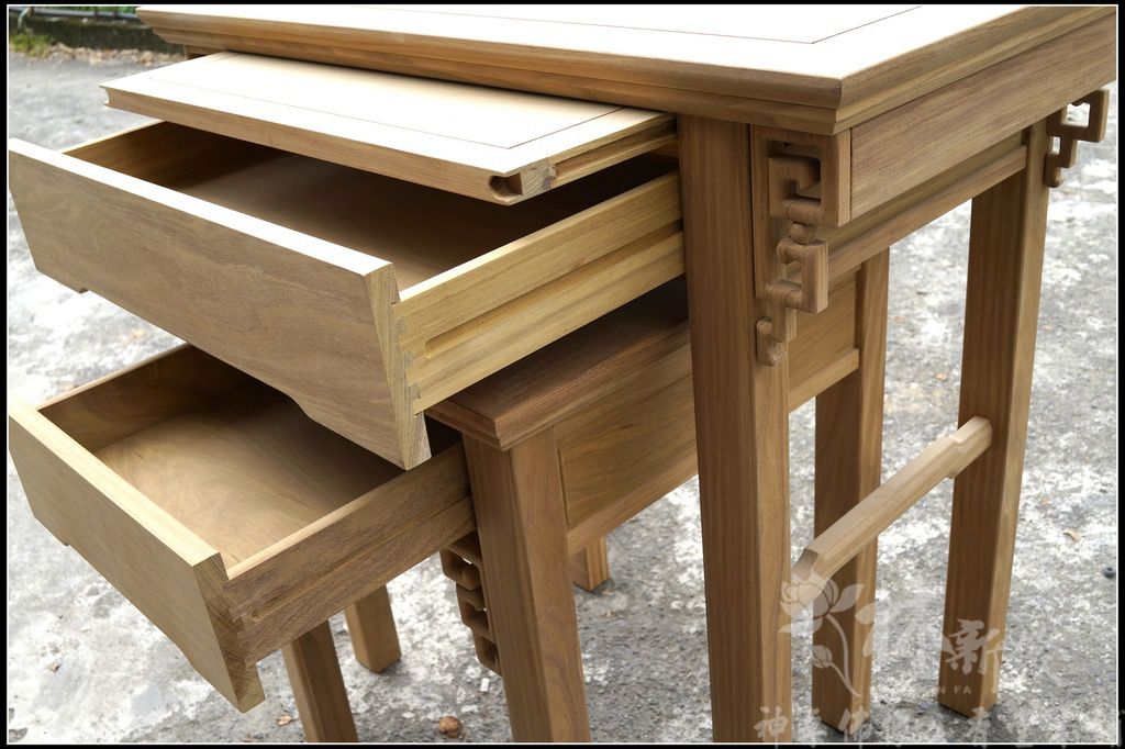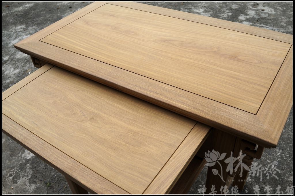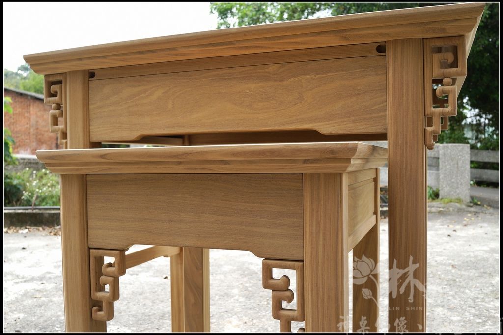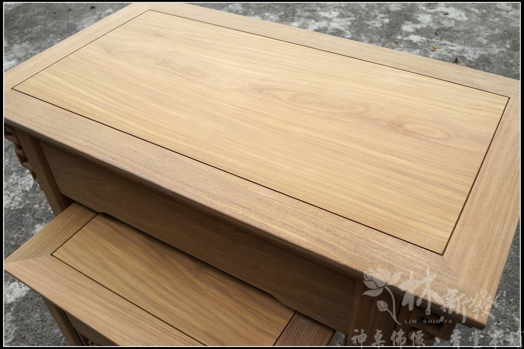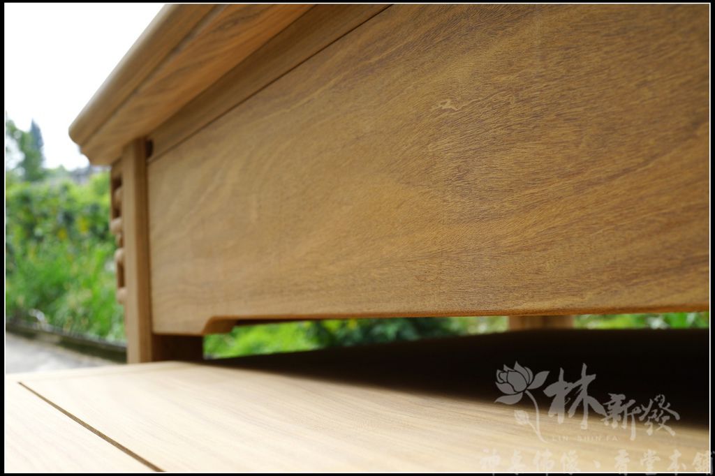 林新發台灣手工神桌作品,依您的需求客製化量身訂製,這款原先為彎腳設計款式,後來依客人需求手工打造成順腳款。就是要給您獨一無二的佛堂設計。