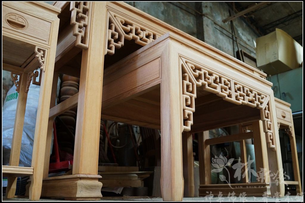 林新發神桌作品/特選花梨全台灣手工「薪傳系列神桌」,上頭的圖紋雕刻像徵要把我們歷代祖先最好的部份代代薪火香傳。