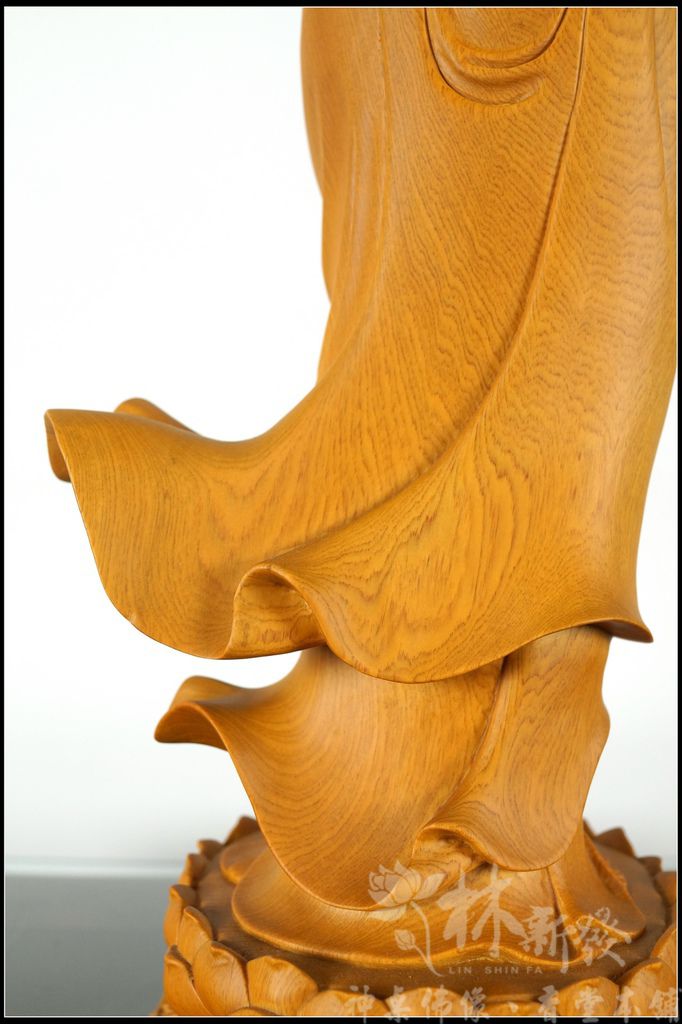林新發藝術神像創作,檜木雕刻一體而成的站姿全蓮座如意觀音,分享給有合緣的格友們囉!