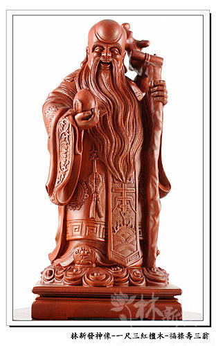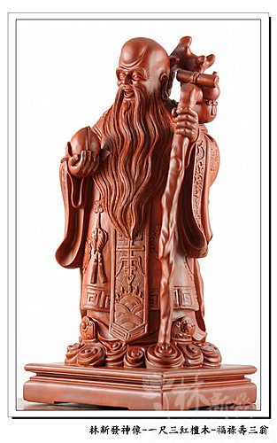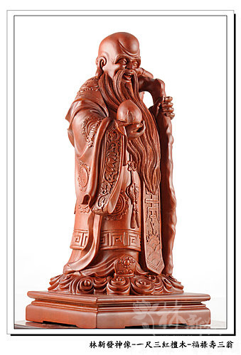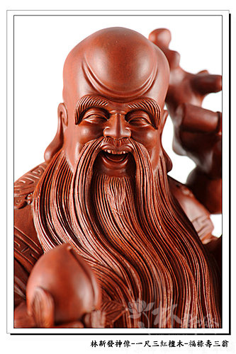 神像-一尺三紅檀木精雕-福祿壽三仙-壽翁(南極仙翁)
