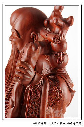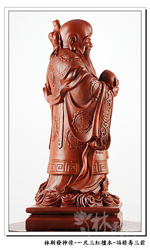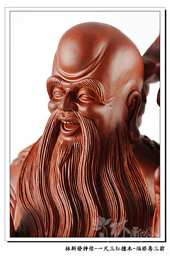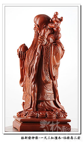 神像-一尺三紅檀木精雕-福祿壽三仙-壽翁(南極仙翁)