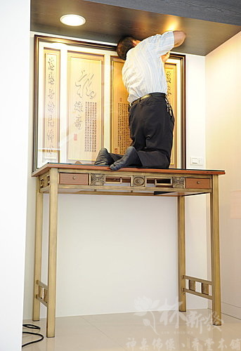 神桌-4尺2古銅神桌+觀自在雕刻神聯(八月八號送淡水唷!)