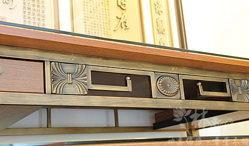 分享的是這組四尺二古銅神桌搭配上觀自在雕刻神聯,