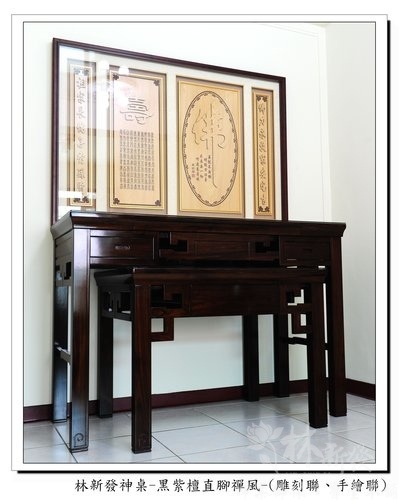 下面這組是配佛道禪心雕刻聯,尺寸是四尺二的喔!素雅簡單,但就是那麼的耐看