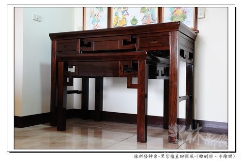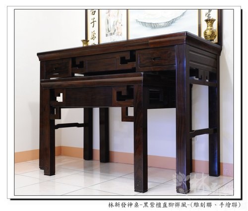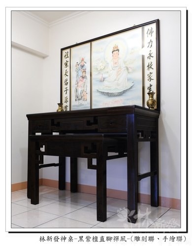 神桌-黑紫檀直腳禪風神桌(佛壽菩提、佛道蓮花、自在觀音、手繪觀音)
