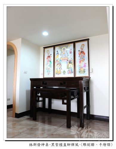 ^^~除了雕刻聯外,配上手繪的觀音聯或是眾神聯,也相當合適!