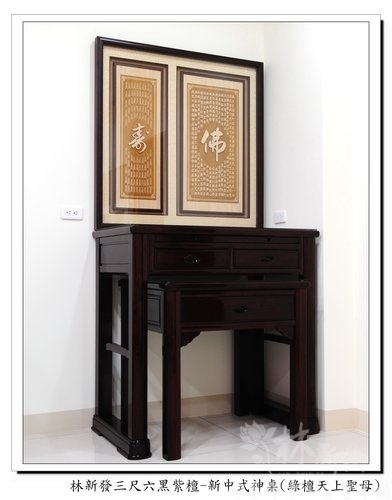 神桌-三尺六黑紫檀新中式神桌(供奉綠檀木天上聖母娘娘)