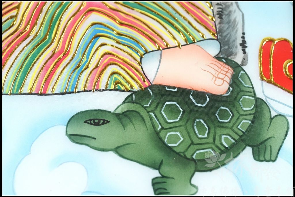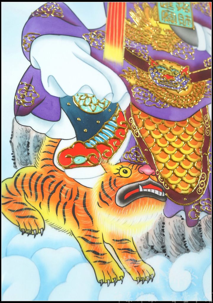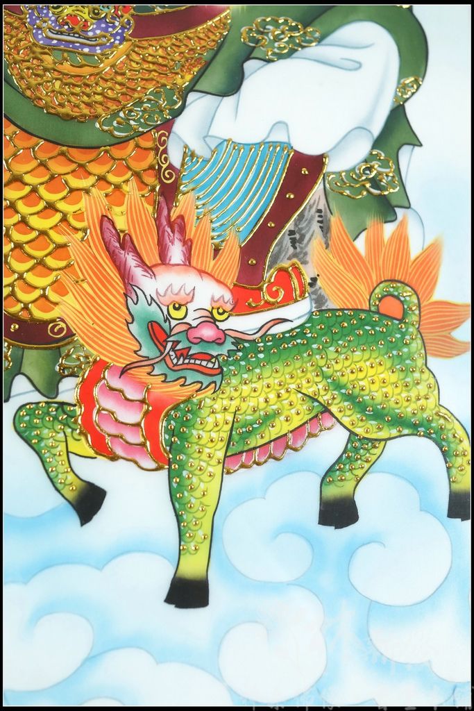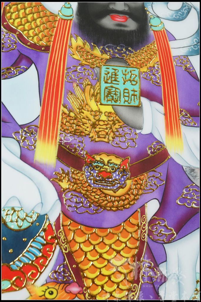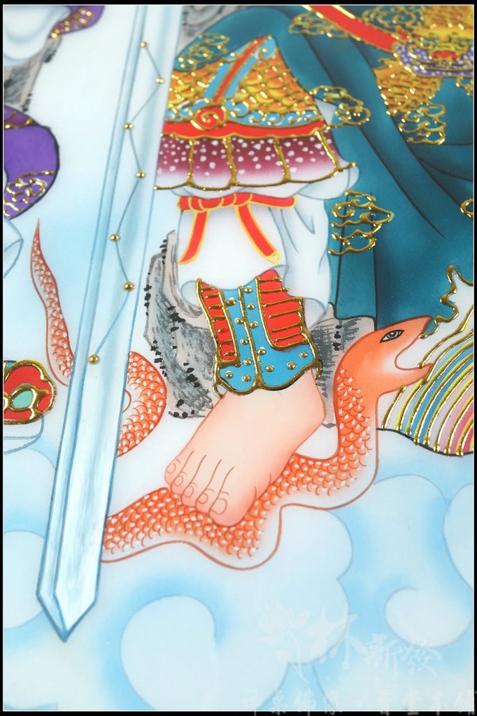 然後才依圖的配製下去手工彩繪,最後牽上金線,來增加作品的立體感,這組作品是遠從台灣東部的客戶依神明的旨示訂製的
