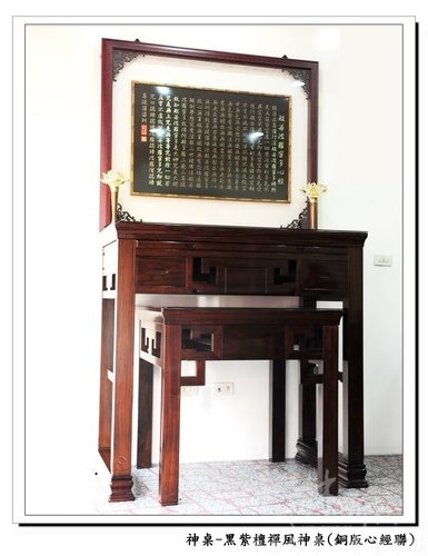 林新發神桌-四尺二寬、四尺二高-黑紫檀禪風神桌(銅板心經聯)