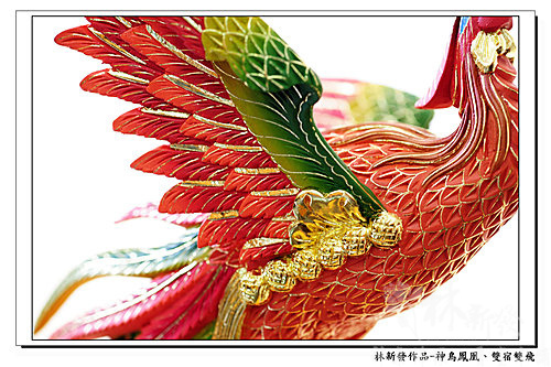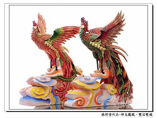 林新發作品-一尺三樟木按金彩繪-神鳥鳳鳳、雙宿雙飛