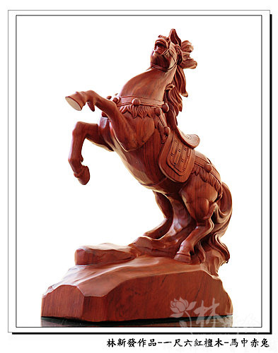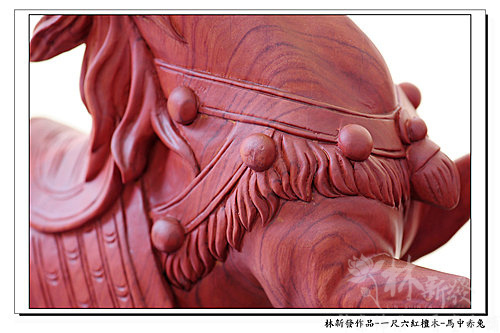 林新發作品-紅檀木雕刻-馬中赤兔(關聖帝君戰馬)
