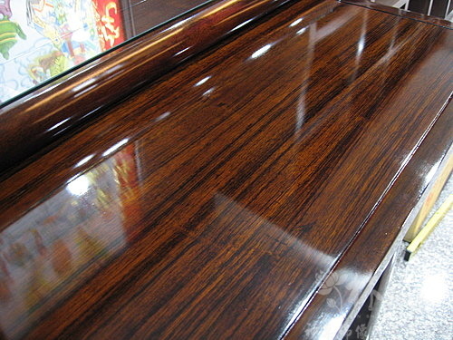 下面這張的感覺最貼近現場眼睛看囉!深色神桌真的比較難抓質感~