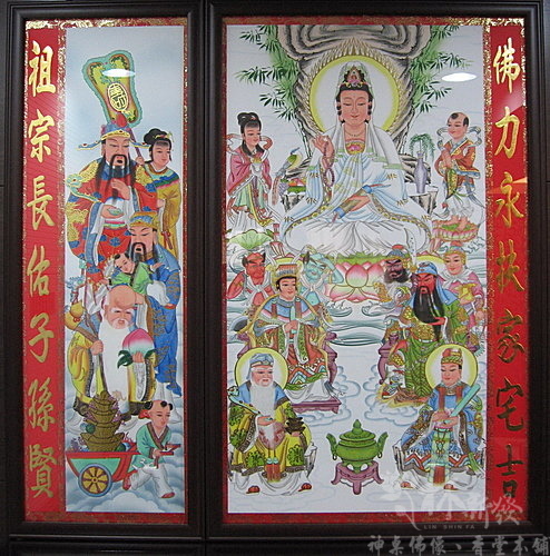 三尺六的黑紫檀神桌~~配上彩繪眾神觀音聯~~~