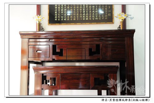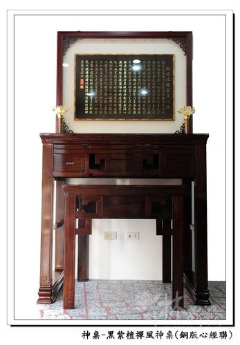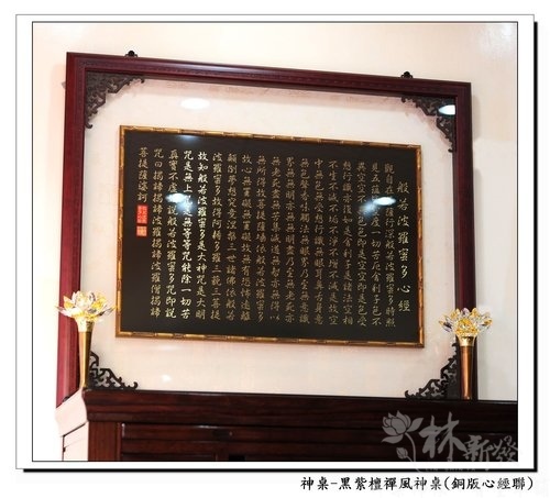 林新發神桌-四尺二寬、四尺二高-黑紫檀禪風神桌(銅板心經聯)
