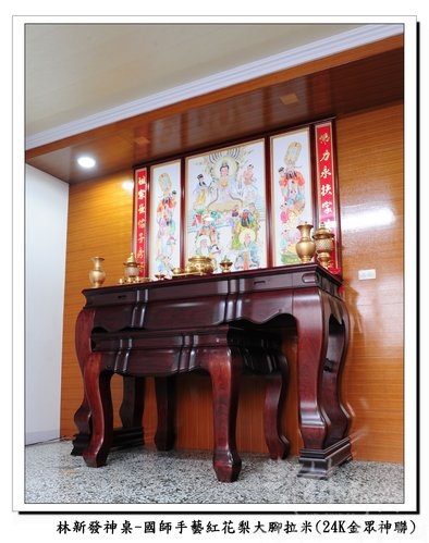 頂級的神桌子配上最高檔次的神明聯~~~我相信過一百年後,後代子孫一定也會讚嘆自己的阿公阿媽當年的好眼光的