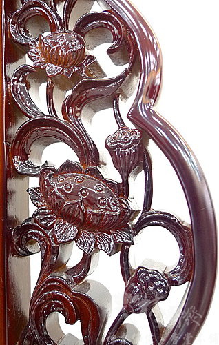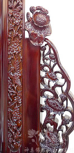 花梨木精雕祖先牌尺寸為:三尺半高、二尺九寬,同樣樣式的中牌:二尺二高、一尺八寬