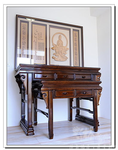 再來要承認一下丫倫有用消光鏡拍唷!因為手工生漆是做亮面的~~所以神桌反光很強