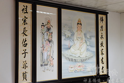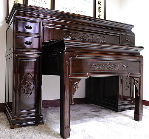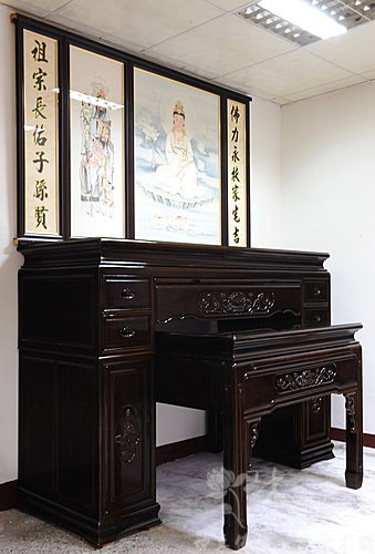 神桌-五尺八紫檀木-桶桌式神桌+自在盤坐觀音聯(大園沙崙)